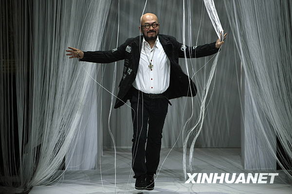 3月5日,在法國巴黎舉行的2009—2010秋冬成衣周上,日本設(shè)計(jì)師在時(shí)裝秀后向觀眾致意。新華社記者張玉薇攝