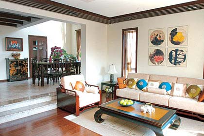 在國(guó)外漂久了反到越來(lái)越喜歡記憶中的雕梁畫(huà)棟、木作石刻?;貒?guó)后,我就致力于把家打造成想象中的樣子。可是,在看過(guò)幾套純中式裝修的樣板之后,我就打消了弄一個(gè)完全雕梁畫(huà)棟的家的念頭。太不實(shí)用了。而且那些古色古香的家具與現(xiàn)代化的電器完全不搭調(diào),真的很別扭。于是我聽(tīng)從了設(shè)計(jì)師的建議,先設(shè)計(jì)出一個(gè)舒適實(shí)用的現(xiàn)代風(fēng)格家,再在這基礎(chǔ)上添置一些具有符號(hào)性質(zhì)的中式家具。這樣問(wèn)題就解決了。