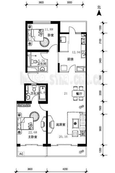 1、房間為長(zhǎng)方形,過(guò)于狹長(zhǎng),從南走到北,會(huì)造成使用上的不便.
