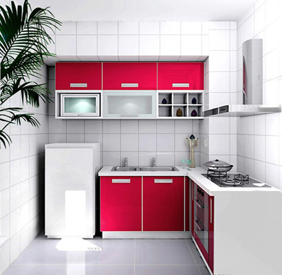 在裝修、布置小廚房的時(shí)候不僅需要各個(gè)面有色彩,而且還要有亮度,因?yàn)樾N房的使用面積非常有限,所以在整體色彩安排方面,切忌“花哨”。特別要注意不能使用印有立體感圖案或明暗對(duì)比強(qiáng)烈的墻紙或墻磚,否則不僅會(huì)使廚房面積在視覺(jué)上顯得狹小,而且容易使人產(chǎn)生凹凸不平的錯(cuò)覺(jué)。墻面色彩安排宜以白色或淺色為主,而不宜使用反差過(guò)大的顏色。