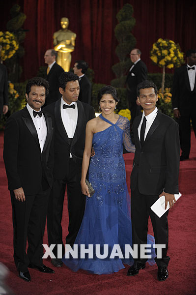 影片《貧民窟百萬富翁》的演職人員亮相紅地毯。新華社記者戚恒攝