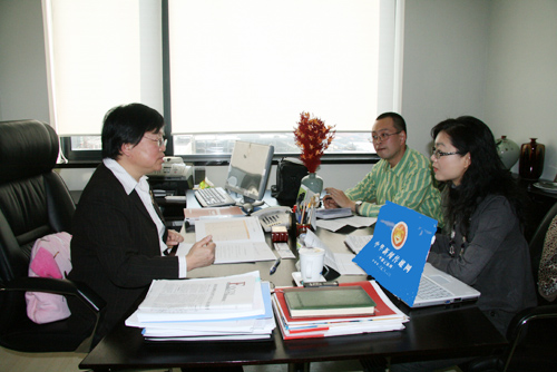 中國(guó)教育電視臺(tái)副臺(tái)長(zhǎng)陳力(左一)接受中國(guó)記協(xié)網(wǎng)、新華網(wǎng)傳媒頻道專訪 劉春雷 攝