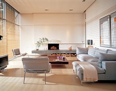 淺灰色的布藝沙發(fā),白色順暢的壁燈吊頂,陽(yáng)光透過(guò)淡黃色珠簾影射在日式的茶幾上,遠(yuǎn)方翠竹點(diǎn)綴客廳內(nèi),在體現(xiàn)了主人的唯美理念的同時(shí)又充滿了現(xiàn)代感。