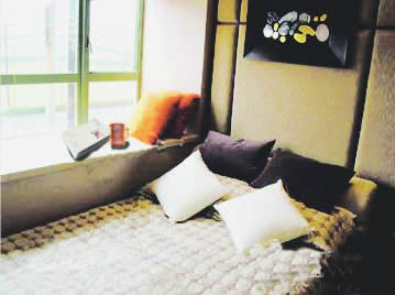 女人天生愛(ài)做夢(mèng),擁有一個(gè)晴觀落日、夜觀星空的大飄窗是不少女性的夢(mèng)想?,F(xiàn)在,女人們可以把飄窗掛上粉色或者紫色的碎花棉布窗簾,擺上一盞香熏燈,旁邊放一個(gè)小小的沙發(fā),或者鋪上軟軟的地毯,放上幾個(gè)可愛(ài)的抱枕,好好想象一下過(guò)去和未來(lái)。還可以為飄窗臺(tái)做一套漂亮的柜子,再在窗臺(tái)上靠邊三分之一的空間里,魔術(shù)般變出一張精巧的梳 妝臺(tái),收羅全部的美麗武器。這樣,一個(gè)屬于自己的私密空間就產(chǎn)生了。有了這些,抱著布絨娃娃慵懶的窩上一個(gè)下午,找找少女時(shí)的初戀吧!