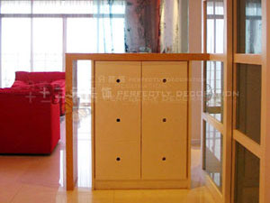 設(shè)玄關(guān)為了起裝飾作用,這里是客人從繁雜的外界進(jìn)入這個(gè)家庭的最初感覺(jué)??梢哉f(shuō),玄關(guān)設(shè)計(jì)是設(shè)計(jì)師整體設(shè)計(jì)思想的濃縮,它在房間裝飾中起到畫龍點(diǎn)睛的作用,能使客人一進(jìn)門就有眼睛一亮的感覺(jué)??剂康綄?shí)用及預(yù)算,設(shè)計(jì)師建議用鞋柜代替玄關(guān)。