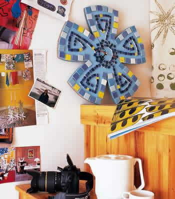 一款普通的花形掛鐘,因?yàn)轳R賽克的參與而精彩。馬賽克拼花在視覺(jué)上給人美感,由于沒(méi)有填縫,高低錯(cuò)落更有一種立體感,當(dāng)嘀嗒嘀嗒的聲音把你的目光吸引到這朵花上的時(shí)候,你是否聞到春的氣息?