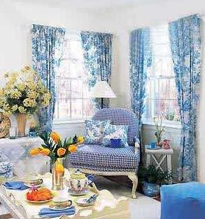 淡藍(lán)風(fēng)格的小碎花布藝加上自然材質(zhì)的裝飾再加上印有淡藍(lán)花色的茶杯。家居里彌漫著優(yōu)雅的鄉(xiāng)村田園風(fēng)格。淡淡藍(lán)白碎格子沙發(fā)透著鄉(xiāng)村風(fēng)格的樸素,田園風(fēng)格的木質(zhì)茶幾,窗簾上那些淡藍(lán)色的碎花紋猶如手工描繪般細(xì)致。