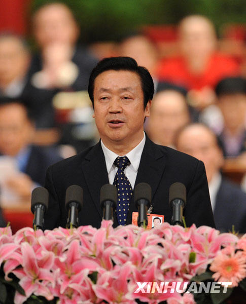 3月10日,十一屆全國(guó)人大二次會(huì)議在北京人民大會(huì)堂舉行第三次全體會(huì)議。最高人民法院院長(zhǎng)***作最高人民法院工作報(bào)告。 新華社記者黃敬文攝