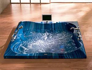 浪鯨衛(wèi)浴這款爵士系列的浴缸名副其實(shí),流線型設(shè)計(jì)頗具貴族氣派。電視、溫度顯示器、花灑、阿拉丁造型的水龍 頭,都彰顯著貴族的品味。浴缸底部有七彩的小燈,除了在造型和功能上花心思,在燈光效果上也造了不少文章,令使用者更能享受沐浴的過程。