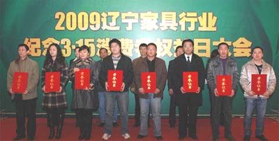 活動(dòng)中,遼寧省家協(xié)、省消協(xié)、沈陽(yáng)市產(chǎn)品質(zhì)量監(jiān)督檢驗(yàn)院等單位的領(lǐng)導(dǎo)向獲得“2009年遼寧省家具?門(mén)業(yè)?裝飾裝修?樓梯 ?櫥柜誠(chéng)信企業(yè)”頒發(fā)獎(jiǎng)牌和證書(shū)。