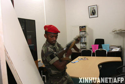 3月16日,一名馬達(dá)加斯加武裝部隊士兵持槍進(jìn)入位于塔那那利佛市的一處總統(tǒng)府辦公室。當(dāng)晚,馬達(dá)加斯加武裝部隊占領(lǐng)了位于塔那那利佛市中心的總統(tǒng)府,接管過程中發(fā)生沖突,總統(tǒng)府附近的中央銀行大樓遭到炮擊。 新華社/法新