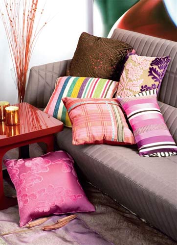 點(diǎn)睛之筆:彩條靠包 呼應(yīng)沙發(fā)