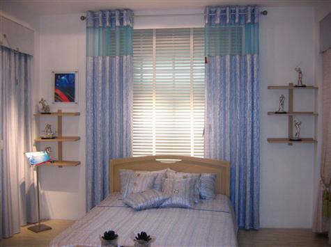 窗簾的功能首先是吸聲、隔音、隔熱、防寒、調(diào)節(jié)光線等。一幅圖案別致新穎、色彩協(xié)調(diào)美觀的窗簾,會(huì)使居室藝術(shù)情趣倍增。窗簾通常占據(jù)了幾乎是一整面的墻面,會(huì)吸引人們的視線,它的裝飾作用是不容小覷的。