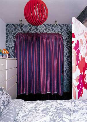 縱觀整個(gè)臥室,無論是紫色的簾子還是粉色的吊燈,在色彩上皆與那道精彩的“密室之門”相互呼應(yīng)。