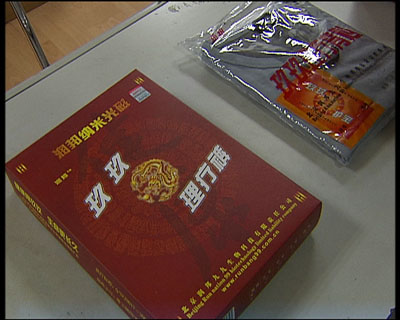 這是記者在商場(chǎng)里買到的玖玖理療褲,在這個(gè)包裝盒上記者發(fā)現(xiàn),玖玖理療褲的生產(chǎn)廠家是北京潤邦玖玖生物科技有限公司,而奇怪的是產(chǎn)品的批準(zhǔn)文號(hào)卻來自河南,北京的廠家生產(chǎn)的產(chǎn)品,為什么需要河南的批號(hào)哪?河南省衛(wèi)生廳給記者發(fā)來了這樣的傳真,上面寫著,我廳未給北京潤邦玖玖生物科技有限公司生產(chǎn)的玖玖理療褲辦理過批準(zhǔn)文號(hào),其產(chǎn)品標(biāo)示豫衛(wèi)健用字(2004)第0304號(hào)為假冒行為。