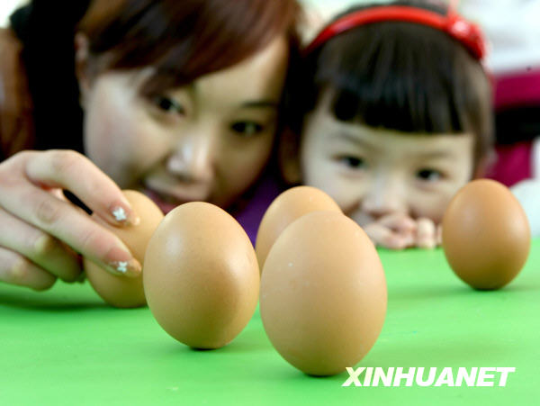 當日是春分節(jié)氣,我國不少地方的群眾都有在這一天“立蛋”的習俗,以慶祝春天的來臨。新華社發(fā)(黃濤 攝)