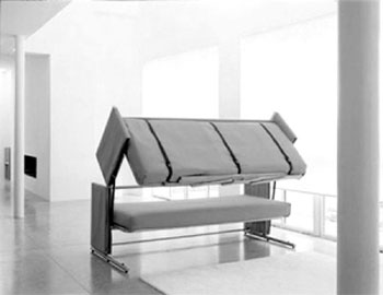 要想客臥可以容納2個(gè)人,這款折疊式的雙層床比較適合你。乍看上去是方方正正的柜子,中間設(shè)有爬梯。可別小看這個(gè)爬梯,當(dāng)床合起來時(shí),線條簡練的爬梯成了床板唯一的裝飾品。它又是操作方便的拉手,完全打開床鋪后,被分成來兩段的爬梯又合在一起共同支撐床體。床是1米多寬、2米長,上下鋪位都是采用轉(zhuǎn)軸式的,里面有簡單的擱板,可用于收納。選購小貼士:相對(duì)于傳統(tǒng)的沙發(fā)床來說,現(xiàn)在的沙發(fā)床注重"內(nèi)外兼修",外在方面,在式樣、布料、顏色上不斷改進(jìn),既有適合年輕人、強(qiáng)調(diào)顏色與圖案的歐式風(fēng)格,又有符合中年人審美標(biāo)準(zhǔn)、淡雅素凈的中式風(fēng)格。內(nèi)在方面,增加了人文關(guān)懷和人體工程學(xué)上的考慮。改良了不符合人體長期坐臥的材質(zhì)---發(fā)泡棉或海綿墊,選用與床相同的素材,有的以防霉墊和多密度泡棉為填充,有的以椰棕為材質(zhì),有的還裝有彈簧,使沙發(fā)床在展開后擁有真正床的舒適與彈性。