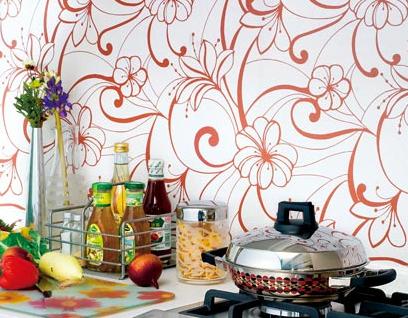 在緊臨廚房操作臺(tái)面的墻壁上,不妨貼上淺色的線描花形圖案墻紙,同時(shí)選擇飽滿而富于變化的花形,這樣能與素色臺(tái)面相呼應(yīng),營(yíng)造出和諧的氣氛。不銹鋼鍋的表面倒映出墻紙上的纏綿花紋,鍋的底部裝飾著互補(bǔ)色搭配的圓點(diǎn)圖案,彰顯出低調(diào)雅致的奢華氣質(zhì),配合磨砂圖案的玻璃儲(chǔ)存罐和條紋裝飾的花瓶,延伸出高品質(zhì)感的廚房風(fēng)格。