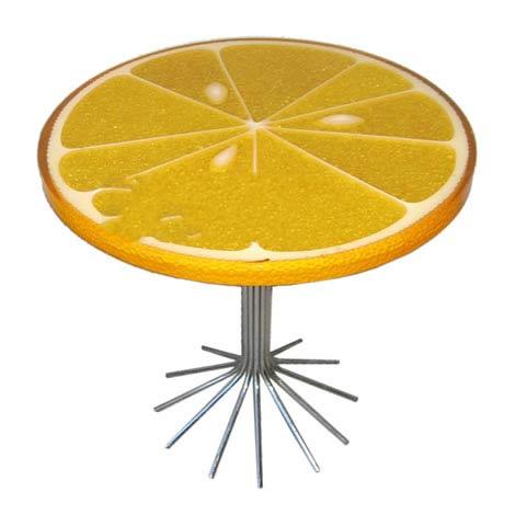 這個(gè)桌子是一片非常巨大的橙子,它不是印上去的,而是用樹脂非常形象的將它制作出來,看看里面的肉、籽、還有外面的皮,看了就能讓你感覺維C 撲面而來。
