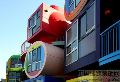 概要: 坐落在東京郊外三鷹市的一座老年公寓堪稱(chēng)世上最花哨的住宅,由日本藝術(shù)家荒川修作和他的妻子、詩(shī)人瑪?shù)铝?amp;#183;琴斯根據(jù)多種科學(xué)規(guī)律設(shè)計(jì)而成,其中包括神經(jīng)學(xué)及實(shí)驗(yàn)現(xiàn)象。這座建筑外形奇特,色彩艷麗,建筑內(nèi)部也是波瀾起伏,色彩繽紛。設(shè)計(jì)者的座右銘是“建筑對(duì)抗死亡”?! ∵@棟住宅日本名稱(chēng)叫“三鷹天命反轉(zhuǎn)住宅”翻譯成中文為“轉(zhuǎn)運(yùn)閣”。這座住宅三層建筑,只有九戶(hù)人家。