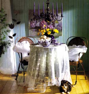 餐廳和居室用蕾絲裝飾后,看起來(lái)明快活潑,還很漂亮。窗簾如果遇到蕾絲,就會(huì)擁有變身的能量,當(dāng)日光掠過(guò),花邊會(huì)形成跳躍的影子穿過(guò)房間。漂亮的蕾絲花邊,還可以裝飾窗簾掛鉤,此外,它也可以用來(lái)保護(hù)光滑的木制表面。