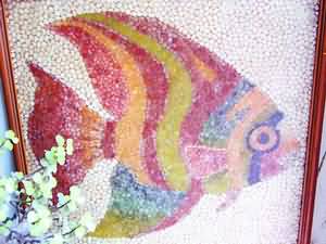 1、石畫是一種高檔的家居飾品,由純手工精制而成,畫材選用金屬絲、天然彩石為原料,以天然彩色石頭的色彩作為畫面的顏色,用金屬絲鑲嵌出圖案的輪廓。畫面平整光滑結(jié)實(shí),彩石粒粒清晰可見。粗獷的石頭顆粒、亮麗的顏色、精制的做工,整幅畫給人的感覺既古樸典雅,又高檔華麗,具有鮮明的藝術(shù)特色。