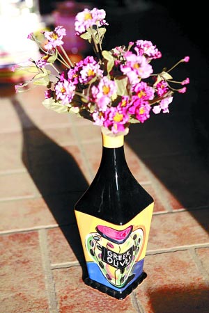 黑乎乎的瓶身,鮮明的商標,沒錯!這就是一個“醬油瓶”,但鮮花依然頑強地從瓶子里探出頭來。盛開在醬油瓶里的花同樣能帶來好心情,何必管它是在哪放著呢?