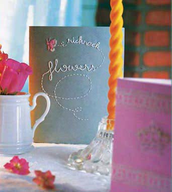 朋友或家人過生日時,送上一張繡有圖案及祝福語句的自制卡片,將會更加凸顯你的心意,同時帶給他人一份驚喜。制作卡片最好選擇較厚的紙張,先在紙上用粉筆畫出想要刺繡的圖案,然后繡上去就可以了。