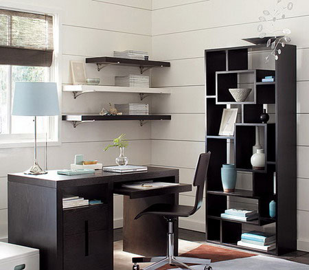 由于書房的特殊功能,它需要一種較為嚴肅的氣氛。但書房同時又是家庭環(huán)境的一部分,它要與其他居室融為一體,透露出濃濃的生活氣息。所以書房作為家庭辦公室,就要求在凸顯個性的同時融入辦公環(huán)境的特性,讓人在輕松自如的氣氛中更投入地工作,更自由地休息。