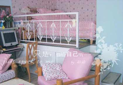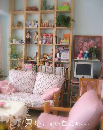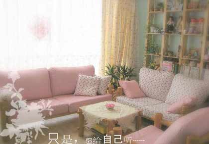 粉嘟嘟沙發(fā),大大的落地窗,飄逸的窗簾,陽光充分透過來,整個房間就溫馨起來