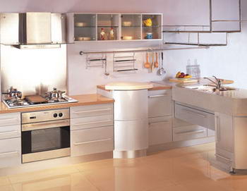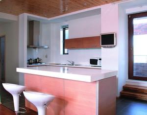 這樣的布置適合炒菜時間之外的日常家居。廚房成為廳的延伸,不僅空間延伸過去,活動內(nèi)容也跟了過去。早晨,妻子在廚房弄點早餐,丈夫在沙發(fā)上看著報紙,兩人順便溝通一下今天的活動內(nèi)容。沒有阻礙,更為融洽。