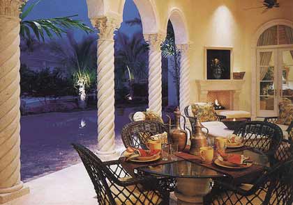 “地中海風(fēng)格”的建筑特色是,拱門與半拱門、馬蹄狀的門窗。建筑中的圓形拱門及回廊通常采用數(shù)個連接或以垂直交接的方式,在走動觀賞中,出現(xiàn)延伸般的透視感。