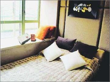 如果客廳不大,就把飄窗改造成一個(gè)小小的娛樂(lè)休閑室吧。其實(shí),只要在飄窗中間擺一個(gè)刻有棋盤的小茶幾,左右各擺一個(gè)軟軟的團(tuán)墊,您就可以和朋友一起喝茶、下棋、談天說(shuō)地……這里不但通風(fēng)采光一流,視野也是一流的。