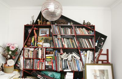 既然書架擺放的位置可隨意性,那么書架的樣貌自然也無需太過拘泥。不規(guī)則分隔是格型書架的初級階段,橫格的間距變化主要是為了擺放不同大小的書籍而考慮的;豎格的交錯排列則不僅可以增加視覺變化,打破普通書架的沉悶,還可以增加大書架的牢度,兼具實用功能;另有升級版本,隔板不再是橫平豎直,各種方向的線條交錯,打破常規(guī),甚至還有設(shè)計如流水一般曲折,可以彎轉(zhuǎn)成一個墻上的圓環(huán)、或順勢環(huán)繞居室四周,書架自身也成為一件造型藝術(shù),同所有家具一樣,關(guān)鍵要看怎么去使用它。