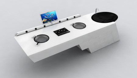 這款高科技廚臺具備“兩個(gè)烹飪單元,一個(gè)水池,還內(nèi)置多媒體電腦。”目前還不清楚這一概念設(shè)計(jì)是否會投入生產(chǎn)。用戶可以控制烹飪單元自動噴灑各種調(diào)料,比如鹽、胡椒粉、味精等等。內(nèi)置的電腦可以用來播放音樂、上網(wǎng)找菜單,和朋友電話等等,不過做菜的時(shí)候三心二意可不是一個(gè)好主意。