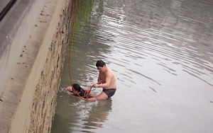 林先生稱,當(dāng)時(shí)他跳入河后發(fā)現(xiàn)河邊雖然很淺,但河中間卻比較深,他根本夠不著底。幸虧輕生女子衣服穿得很多,漂浮在水面上,他游過去將其拉至岸邊,由于河邊的圍墻有三四米高,及時(shí)趕到的警察拋下繩子和救生圈,輕生女子被眾人拉了上來。