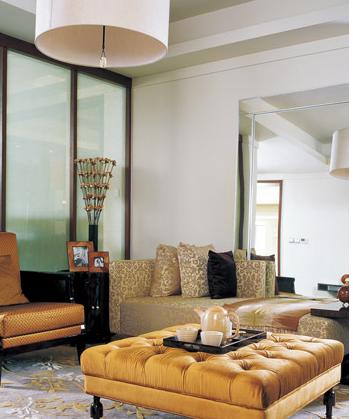 金色因?yàn)椴煌牧系馁|(zhì)地、光度、色彩的飽和度而有可能產(chǎn)生萬(wàn)千的變化,這三項(xiàng)組合不同,金色的感覺就不一樣,使用起來(lái)非常微妙,這就需要對(duì)空間與色彩的搭配有非常精準(zhǔn)的把握。