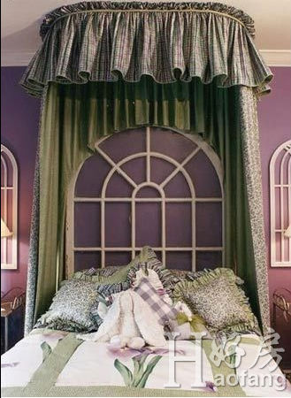 一般講,床頭那面墻沒有窗子的。人為地裝飾出假窗,在安全、 不受風(fēng)又享受通暢感,比如,造一個(gè)“中式”的圓形窗或“月亮門”,是別有風(fēng)味的。