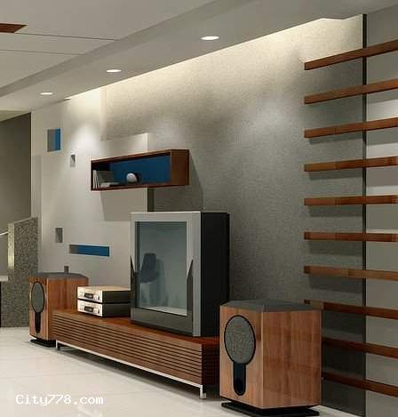 客廳是家人休閑、親朋好友相聚的場所,而目前大眾家庭娛樂的手段主要是看電視、看VCD、唱卡拉OK等,于是,客廳的電視背景墻成了最吸引人們眼球的地方。事實上,在家裝設(shè)計中,電視背景墻早已成了設(shè)計的“焦點”,也是體現(xiàn)主人個性化的一個特殊空間。