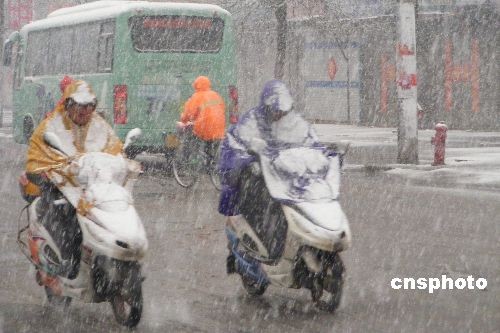 2009年3月24日,濱州市民在鵝毛大雪中艱難前行。中新社發(fā) 唐劍梁效 攝