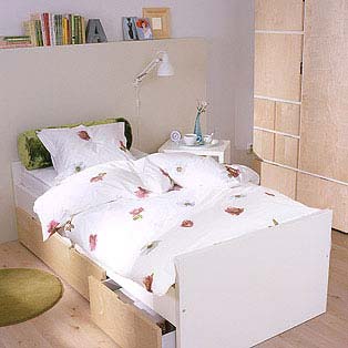 如果一個(gè)人躺在床上望著一間狹長(zhǎng)的睡房,便會(huì)有孤獨(dú)的冷落的感覺(jué)。而那些神經(jīng)敏感的人,更會(huì)胡思亂想而產(chǎn)生許多幻覺(jué)。補(bǔ)救的方法是一分為二。即用矮柜把這狹長(zhǎng)的睡房隔開(kāi),一邊放床,另一邊作為化妝間或書(shū)房。如此改動(dòng),睡房的空間不再空洞無(wú)物,心理上會(huì)感覺(jué)踏實(shí)得多。