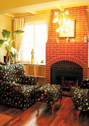 本案客廳的設(shè)計(jì)風(fēng)格為美式鄉(xiāng)村風(fēng)格,家具、壁爐、居室門等元素的色調(diào)比較和諧統(tǒng)一。鴻利博雅裝飾公司設(shè)計(jì)師在壁爐的營(yíng)造中,采用了毛石鋪面,顯得古樸、自然。設(shè)計(jì)師稱,對(duì)于兼顧裝飾和取暖作用的壁爐來(lái)說(shuō),在材料的選擇上要選擇那些隔熱和防火效果好的材料,同時(shí)壁爐的位置也要盡量避開(kāi)燃?xì)庠O(shè)備和廚房。那么,對(duì)于裝飾作用的壁爐造型,就要易于打理并注意運(yùn)用燈光增加情趣。