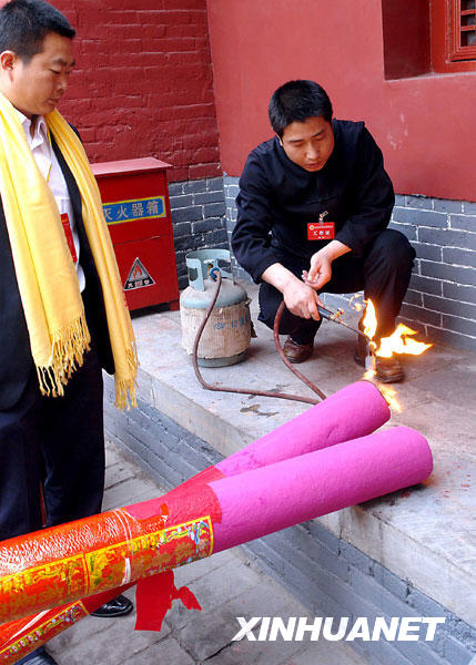 3月29日,在河南省新鄭市黃帝故里景區(qū)正殿前,一位工作人員在用液化氣為香客點(diǎn)香。當(dāng)日是農(nóng)歷三月初三,相傳是中華民族人文始祖黃帝出生的日子,人們紛紛到黃帝故里進(jìn)香祈福。