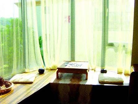 如果客廳不大,就把飄窗改造成一個小小的娛樂休閑室吧。其實,只要在飄窗中間擺一個刻有棋盤的小茶幾,左右各擺一個軟軟的團(tuán)墊,您就可以和朋友一起喝茶、下棋、談天說地……這里不但通風(fēng)采光一流,視野也是一流的。