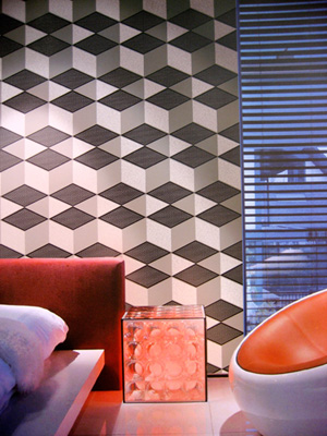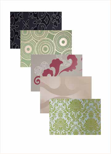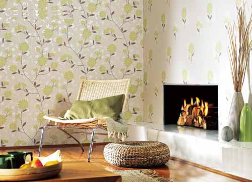 風格制造:在整體氛圍的營造上,主要依靠素色背景和局部圖案的對比來體現。這類壁紙很多都采用電腦設計,無論是局部使用還是大面積鋪貼效果都不錯。一般對于朝陽的房間,可以選用中性偏冷的色調以緩和房間的灼熱感;而背陰的房間,則可以選擇暖色系的壁紙以增加房間的明朗感。要注意有些壁紙的底色是比較暗的,會吸收房間內的光線,故采光較差的房間不宜過多使用。