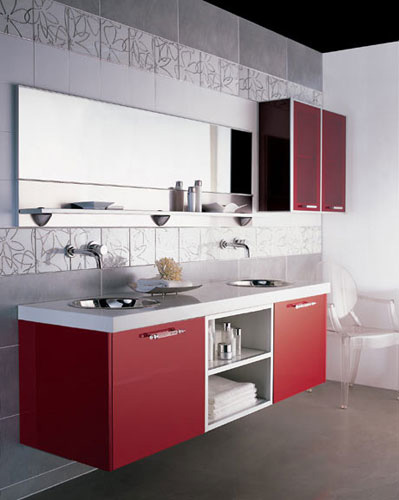 鮮亮的顏色永遠(yuǎn)不會(huì)被設(shè)計(jì)師遺忘,博洛尼推出這款火紅的衛(wèi)浴主題墻,夏日的熱力**勢(shì)不可擋,尤其能凸現(xiàn)摩登女郎們的驚艷魅力。通體的紅色烤漆浴室家具加上銀色不銹鋼入墻龍頭,以及如蕾絲般的ArtDeco風(fēng)格瓷磚裝飾,就這樣整體造型吧,即便是十分自我的衛(wèi)浴空間,也要Show出最響亮的時(shí)尚宣言。