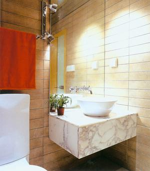 洗面盆可選擇臺式盆或底盆,1.2米X 0.6米的洗手臺對于4平方米的空間來說,就已經(jīng)足夠了。鏡子當(dāng)然是越大越好,因為它可充分?jǐn)U大小浴室的視覺效果,但從其容易清潔及美觀的角度來看,一般設(shè)計成與洗手臺同寬即可。另外,也可直接在衛(wèi)浴的一角安裝角形洗面盆或柱式洗面盆,這樣能使衛(wèi)浴間有更多的回旋余地。