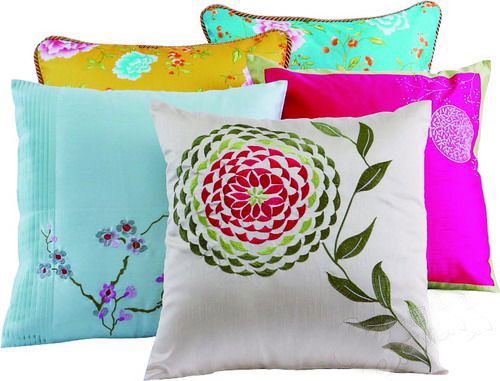 團(tuán)花、梅蝶、翦梅、花鳥(niǎo)等中國(guó)元素圖案配以桃紅、鵝黃、淺金、湖藍(lán)等底色,運(yùn)用精美的玻璃紗銀絲貼繡工藝和特殊的燙鉆工藝,具有中國(guó)風(fēng)特色的抱枕是這一季主打,柔滑的紡絲材質(zhì)色澤清新艷麗,不易脫絲,便于保養(yǎng)。