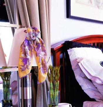 絲巾的設(shè)計師會根據(jù)時令,在每一季推出當季的新系列,色彩與花案翻新,為我們搭配服裝和妝容提供便利。而這個特點恰巧可以成為家居裝飾中討巧的捷徑,我們只需簡單地更換幾塊絲巾,就能營造出適合四季變換的局部氛圍,進而提亮整體空間。用絲巾進行裝飾也非常簡單,不必大動干戈,勞心費力,只要學會幾種打結(jié)方法。