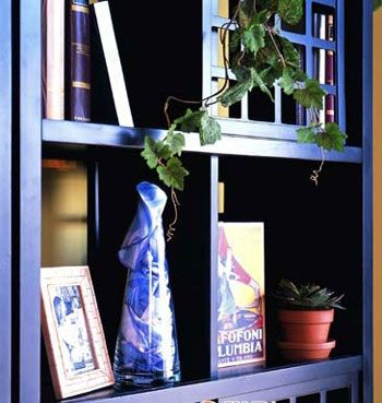 花瓶內(nèi)也許不一定是花,絲巾的質(zhì)感如同花瓣,與生動的綠色植物搭配相得益彰,為厚重的實木書架增添了女性嫵媚。